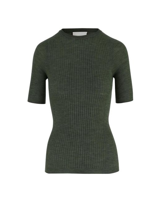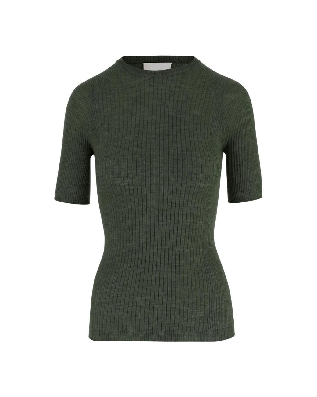 Sa Su Phi Cashmere Blend Ribbed T-Shirt is an Italian-made knit that pairs a soft cashmere feel with a refined slim silhouette. Designed for elevated everyday wear, it works well layered or on its own. Key attributes: Green | Verde | Dark green | Cashmere | Round neck | Short sleeves | Straight hem | Ribbed texture | Dimensions & fit: Model height: 175 cm | Chest: 86.5 cm | Waist: 65 cm | Hips: 92 cm | Shoulders: 40 cm | Model wears size 40 IT | Slim fit | Composition & care: 70% cashmere | 30% silk Colour: green