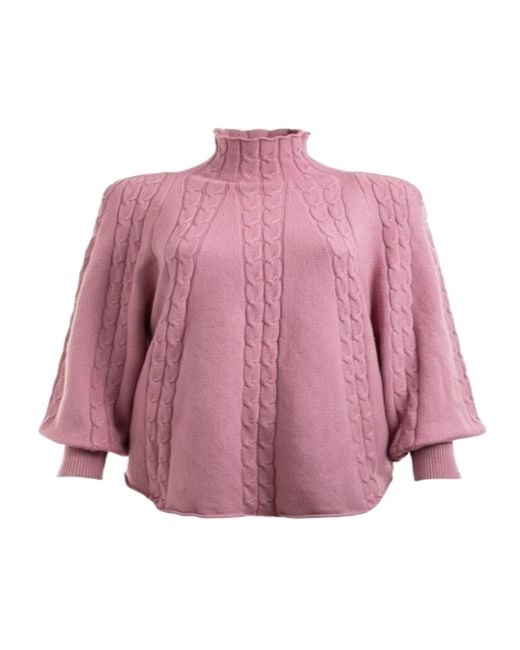 Women's Purple Turtleneck Jumper Cable Knit Light Poncho
