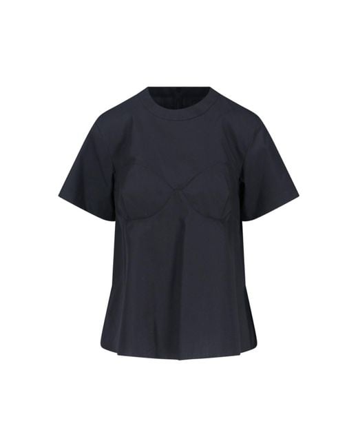 Black Sacai cotton blend T-shirt with crewneck, short sleeves, front stitching, back zip closure, straight hem. Colour: blue
