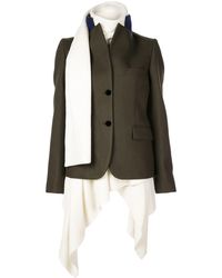 Sacai continues to challenge conventional garment construction by creating ready to wear hybrid items that cater to lovers of the brands sleek Japanese aesthetic, as showcased by this black wool faux fur-trimmed coat. Featuring a double pointed collar, an off-centre front zip fastening, long sleeves, a leather trim, decorative buttons and a belt detail to the rear. Material:Wool/Cupro/Acrylic.