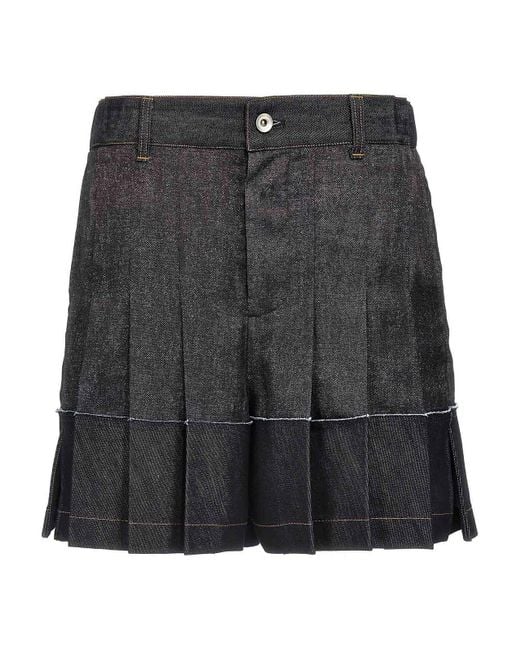 Denim print synthetic shorts with denim flounced model with wide leg zip and button elastic waistband pockets Colour: grey