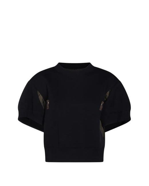 X Spun Organza X Cotton Jersey T-Shirt, Short Sleeves, 100% Polyester - Black