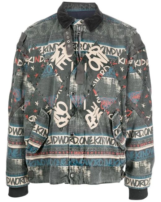 Men's Grey Slogan-Print Bomber Jacket