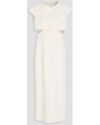 Go to THE OUTNET.COMDress crepe draped cape-effect concealed Zip Fastening Along Back fully Lined mid-weight, Slightly Stretchy Fabric spot Clean imported Colour: white