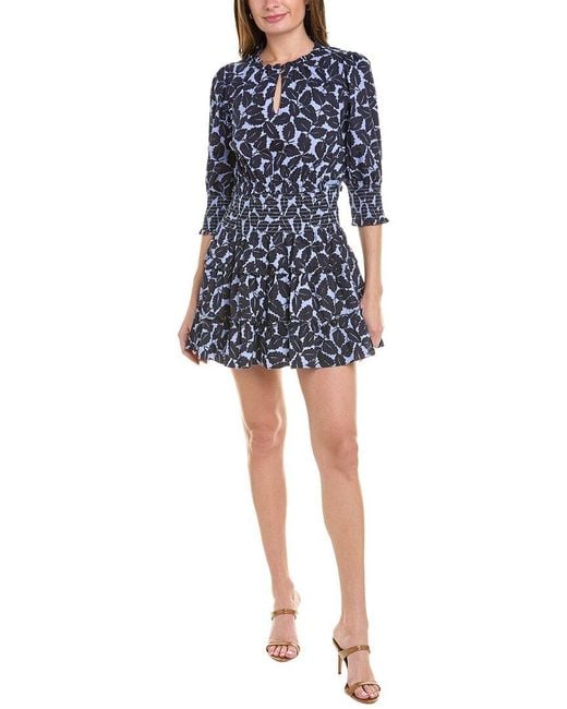 Women's Blue Smocked Waist Mini Dress