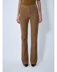 Go to Saint LaurentHigh-waisted five-pocket trousers with a wide leg and centre crease, made with certified cotton. Colour: green