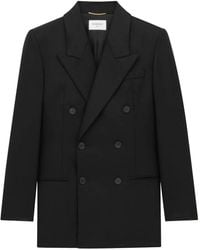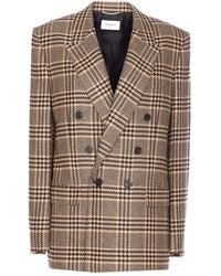 Go to NET-A-PORTERSAINT LAURENT's blazer has heritage checks in shades of tonal-brown, navy and green that give it a retro feel. It's expertly tailored from wool-blend and has a double-breasted profile with wide shoulders and