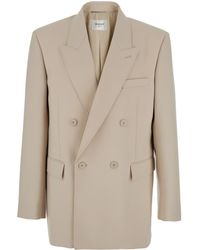 Saint Laurent Men's Black Double-Breasted Coat With Wide Notched Revers