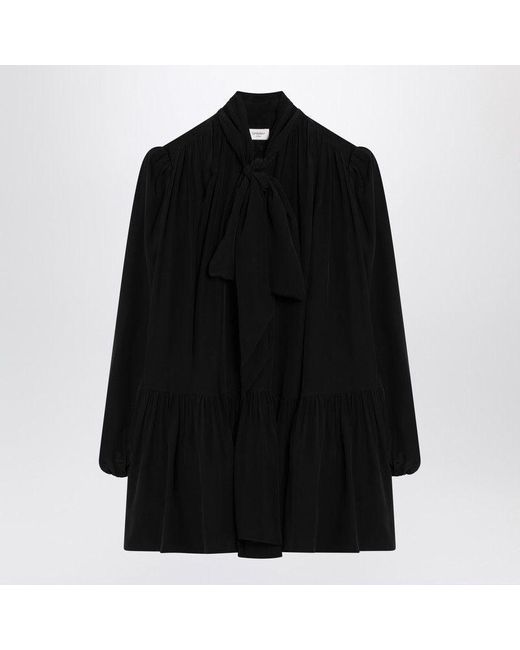 Wide dress in black silk, characterized by long puff sleeves, ruffled skirt, button closure at the front, two side pockets, and lavallière collar.SpecificationValueSeasonSS25Composition100% SILKColorBLACKColor Code1000Made InFRANCEISOFRDepartmentWomenSectionCLOTHINGSubsectionSHIRTSSize InformationCLOTHING FRSize CodeFR Colour: black