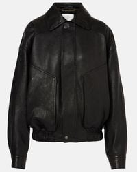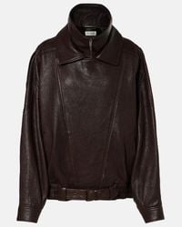 Saint Laurent Women's Grey Leather "Balloon" Bomber Jacket