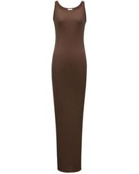 Go to Saint LaurentLong sleeveless dress made with certified silk featuring a scoop front and back neckline and an asymmetrical tiered spiral skirt CERTIFIED SILK scoop neck Colour: black