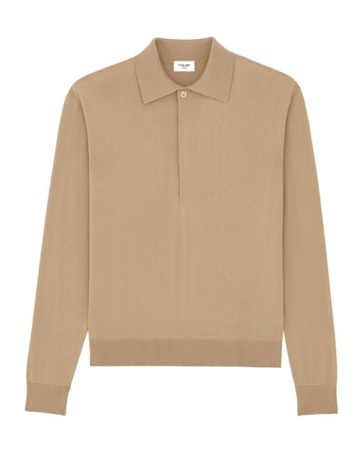 Men's Natural Button Detailed Ribbed-Knit Polo Shirt