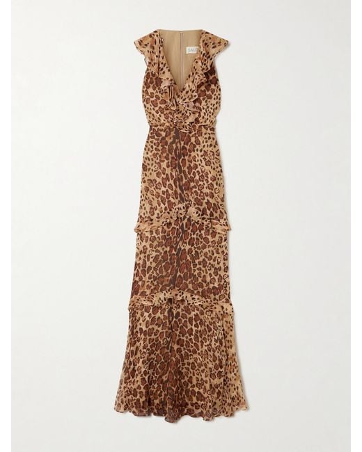 - Rita Ruffled Cheetah-Print Crepon Gown