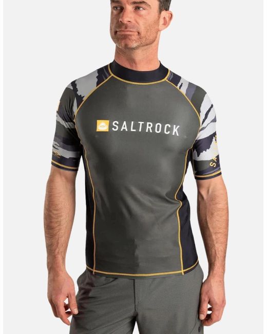 Saltrock Corp logo on front chest & sleeve Loop at Hem to attach to boardshorts Flat locked stitching Specific paddle zone 84% Polyester, 16% Elastane Product Code: YRV1250 Colour: grey