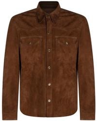 Go to FARFETCHBrown metallic effect button fastening pointed collar adjustable button cuffs front flap pockets Size: 56. Gender: Male. Material:Calf Leather. Colour: black