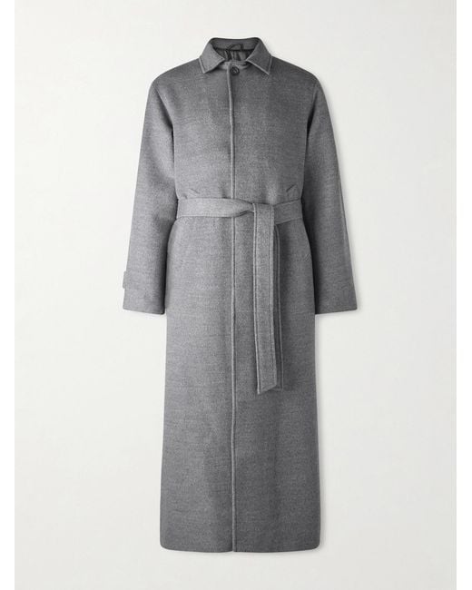Saman Amel's outerwear is created at it's atelier in Italy by expert craftspeople. Cut from pure wool, this single-breasted overcoat is framed by a convertible collar and has an adjustable tie belt to mix up the styling. A set of welt pockets, gently dropped shoulder seams and buttoned sleeve cuffs showcase the label's exacting attention to detail. Colour: grey