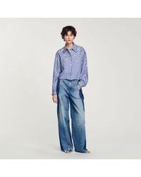 Sandro Women's Blue Cotton Beaded Cropped Shirt