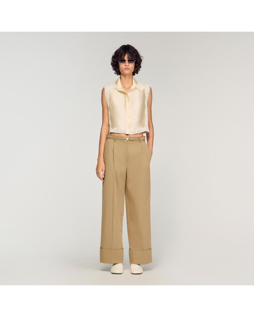 - Cropped Shirt With Lace Detail