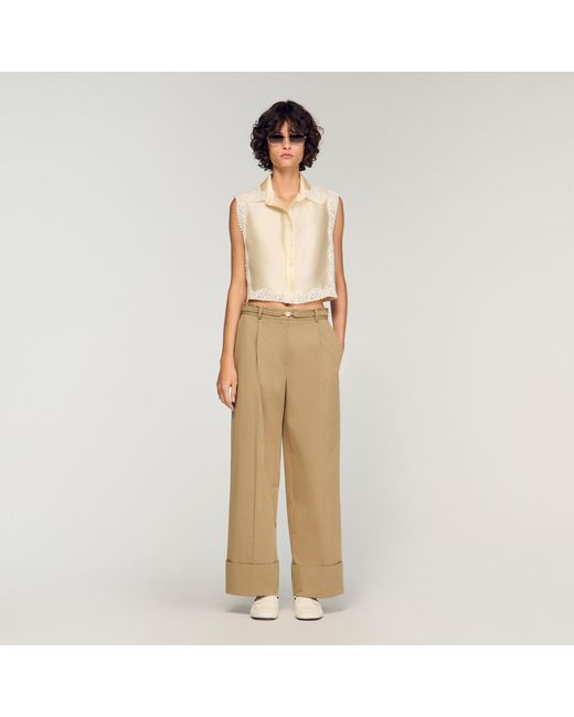 Women's Natural Cropped Shirt With Lace Detail