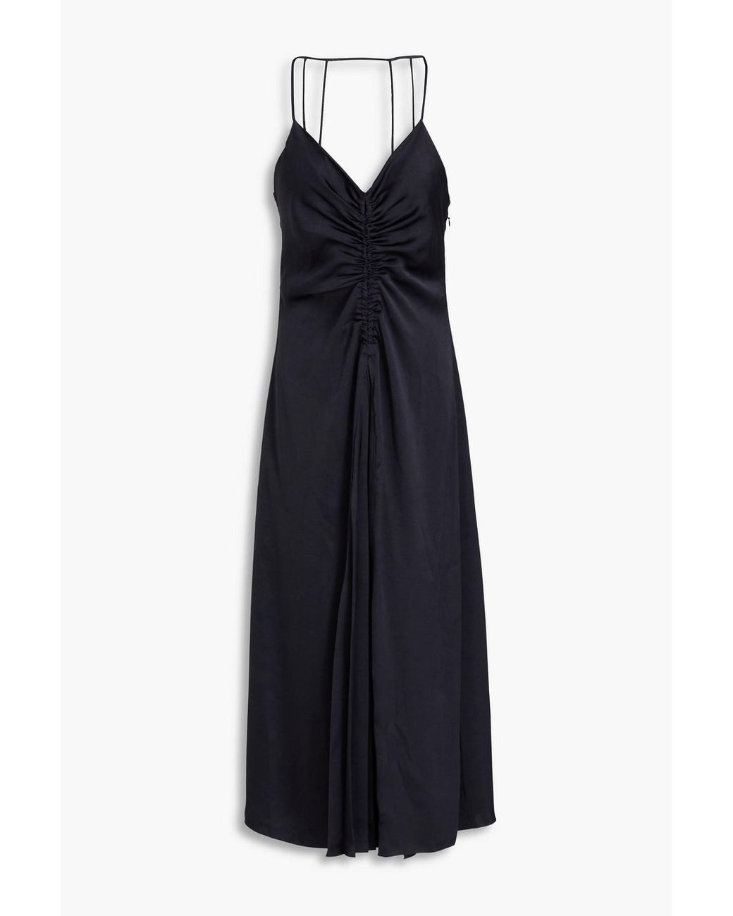 Women's Blue Ruched Satin-Twill Maxi Dress