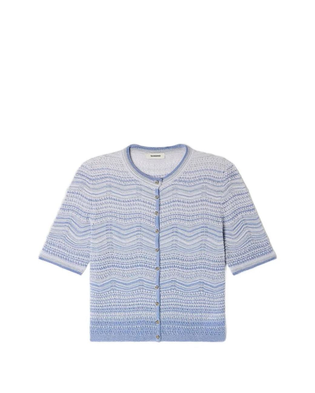 Women's Blue Zigzag Short-Sleeve Cardigan