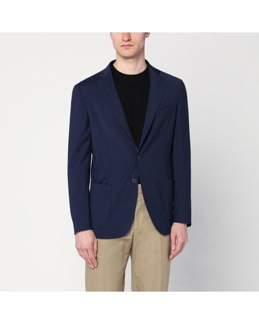 Men's Blue Wool-Blend Single-Breasted Jacket