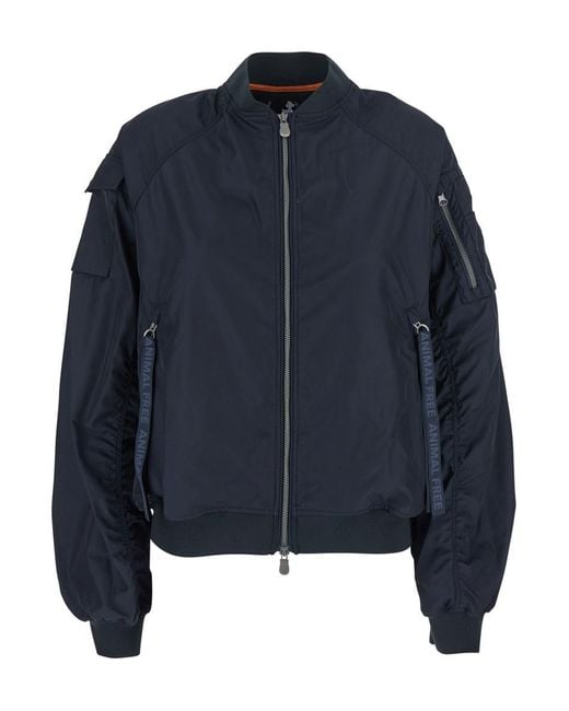 Women's 'lil' Blue-black Bomber Jacket With Front Pockets And Logo Patch Applied On The Sleeve In Tech Fabric Woman