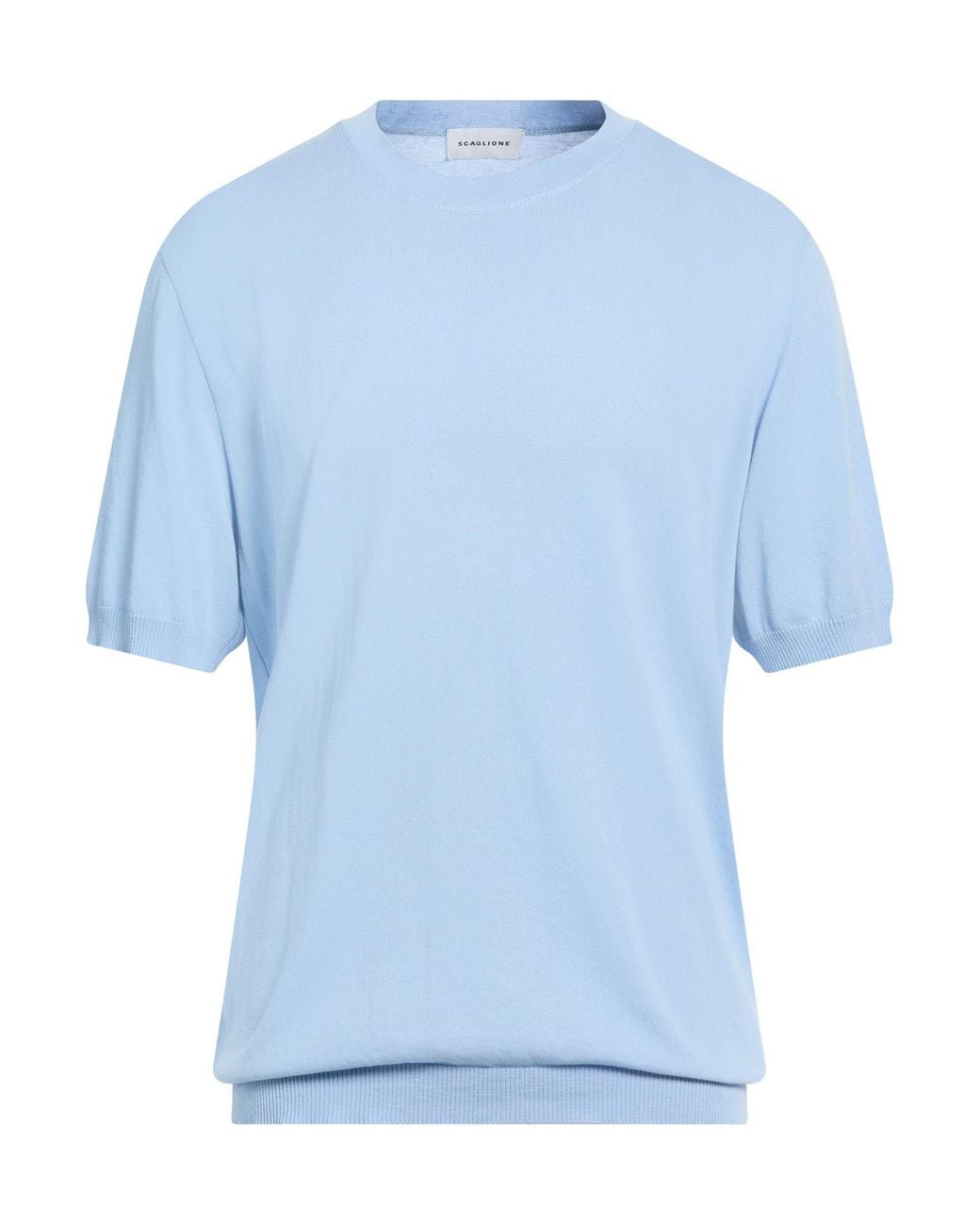 SCAGLIONE. knitted, lightweight knit, no appliqués, plain colour, crewneck, short sleeves, ribbed cuffs, hand wash or dry clean, do not bleach, do not tumble dry, this brand runs large. 100% Cotton.