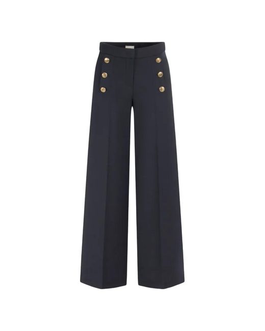Women's Blue Button Wide Leg Trousers