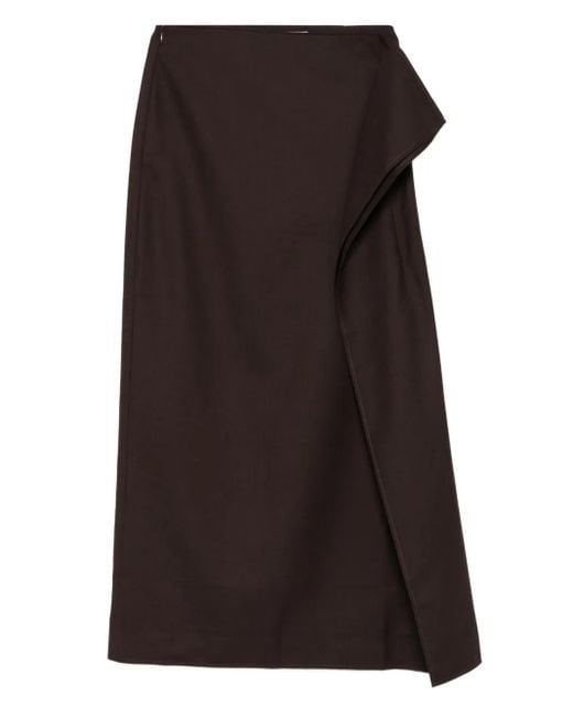 Dark brown wool twill side button fastening front slit regular waist ankle length Size: XS. Gender: Female. Material:Wool/Polyester. Colour: black