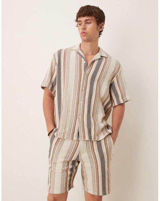 Men's Natural 100% Cotton Co-ord Textured Stripe Shorts