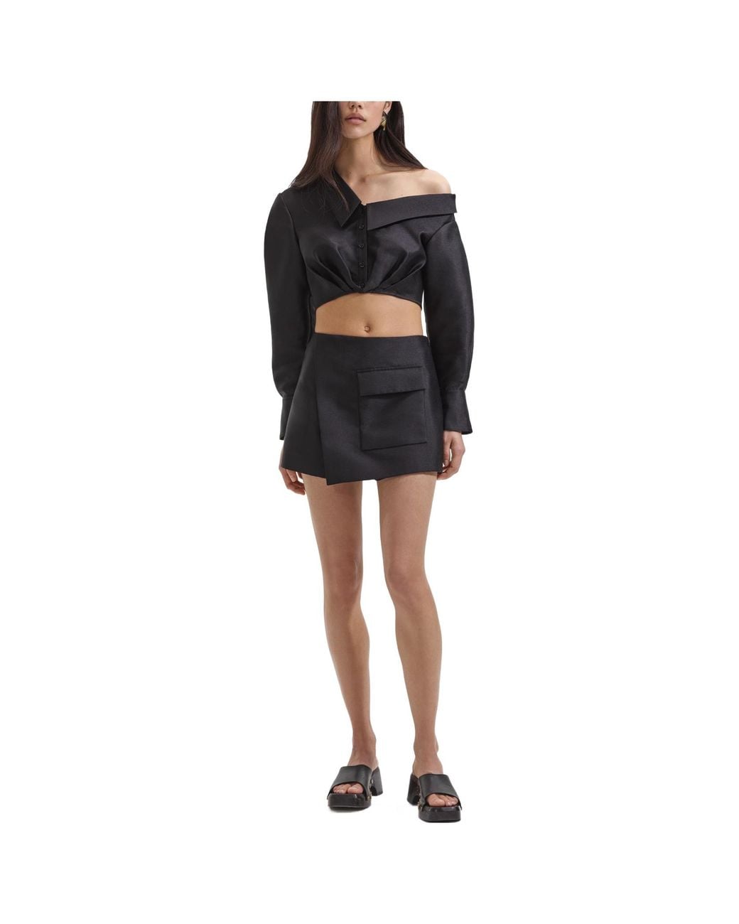 Side zipper opening and closing, asymmetric body wrapping design, functional pocket, lining: 100% polyester fibre Colour: black