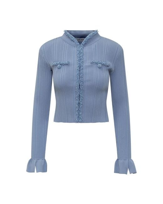 Charm-Detail Scalloped-Trim Cardigan - Blue