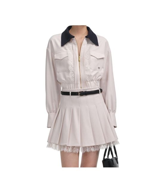 Women's White Self Portrait Lace-Trim Zipped Jacket