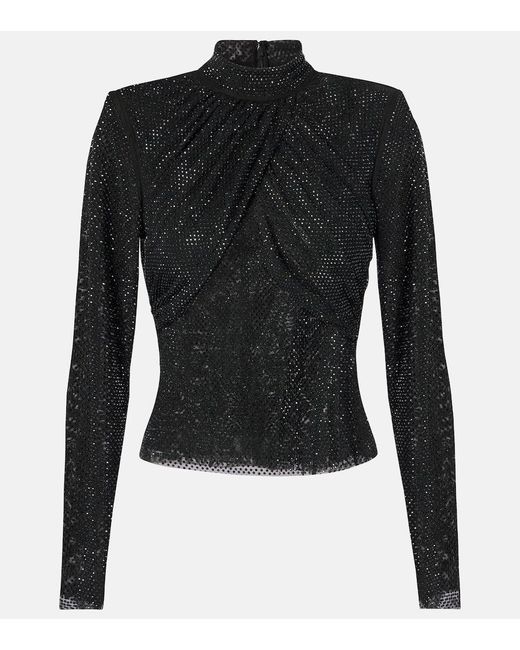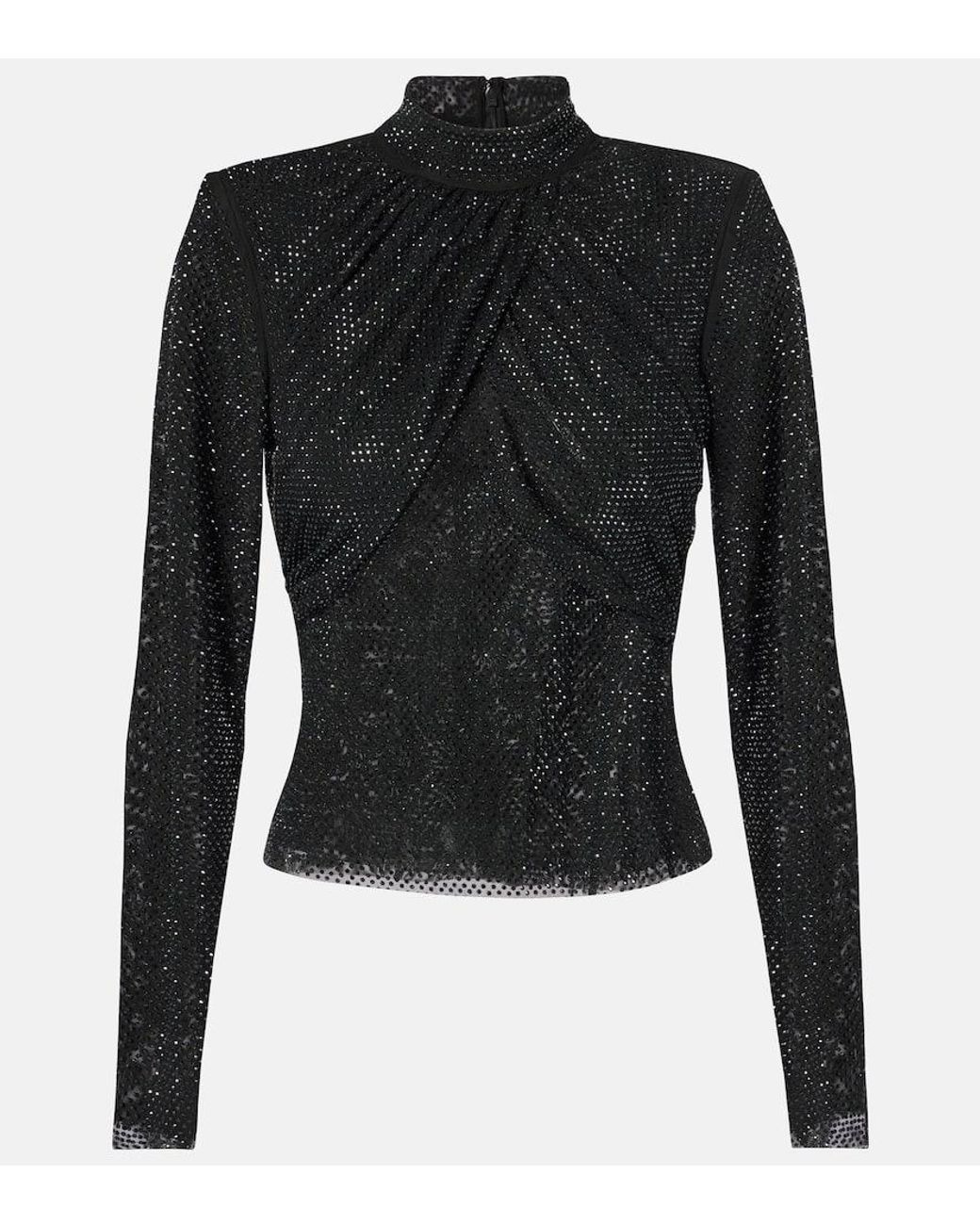 Women's Black Embellished Mesh Top