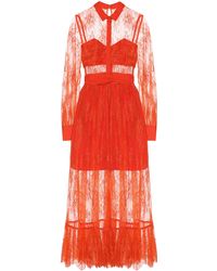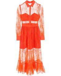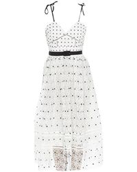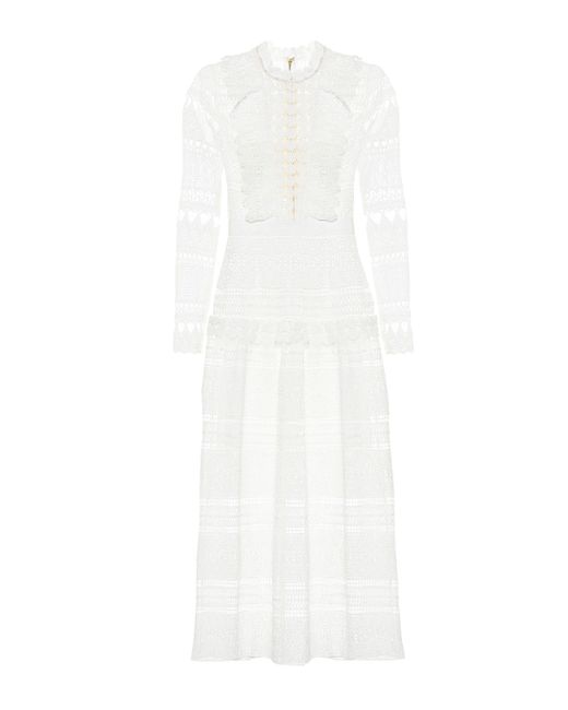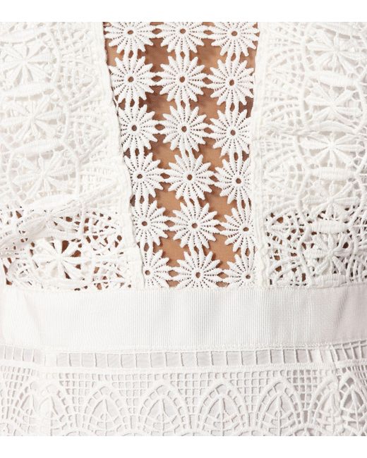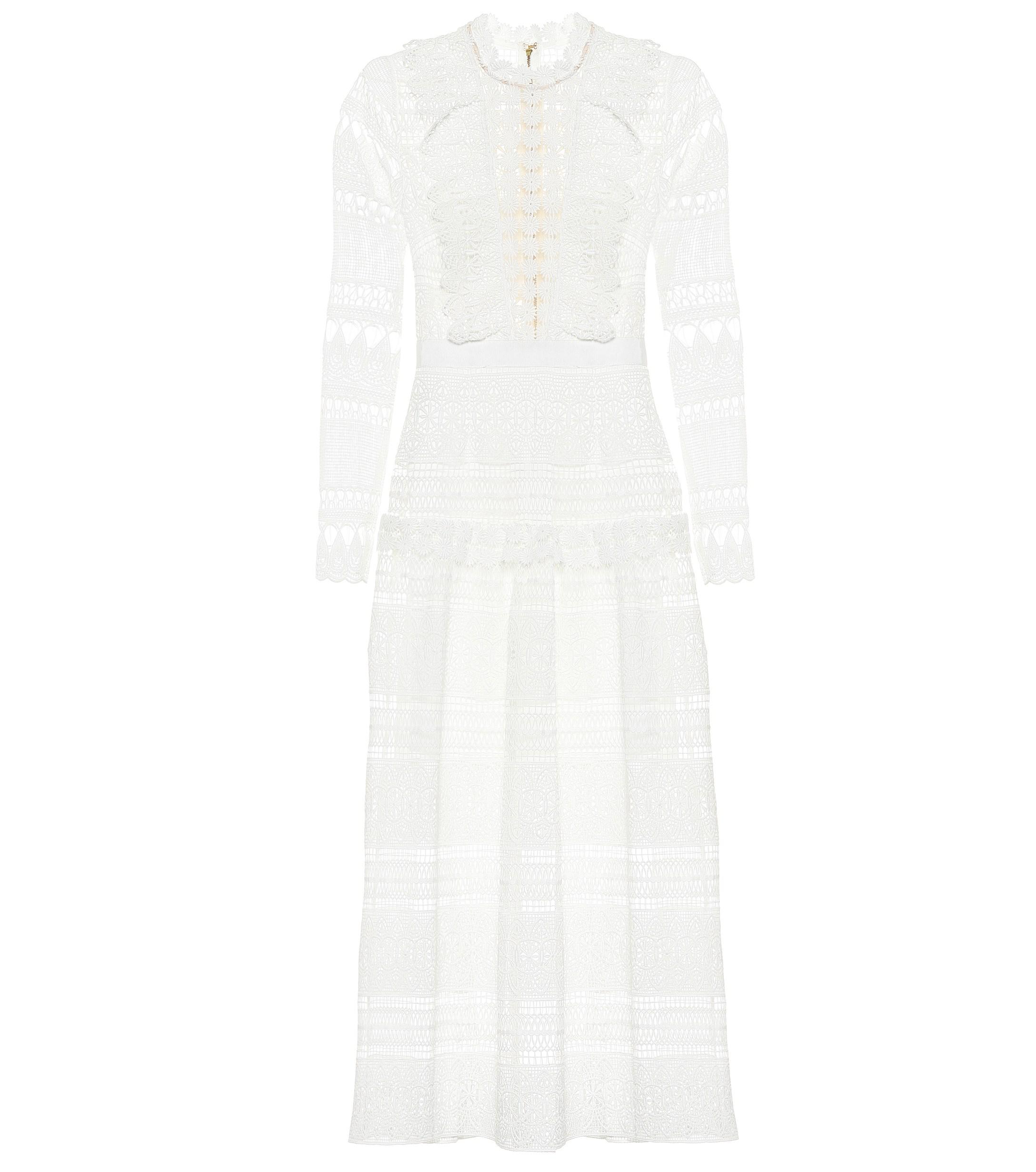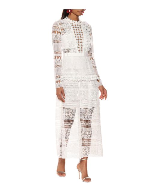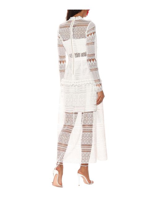 This intricate lace design from Self-Portrait is made from sheer panels with opaque underpieces to ensure modesty in the romantic midi dress. Colour: white
