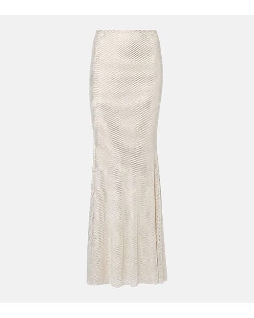 Women's White Rhinestone-Embellished Mesh Maxi Skirt