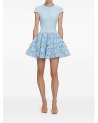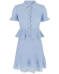 Go to MiintoThis Self-Portrait balloon skirt dress features a flared silhouette and a mini-dress structure, with a contrasting sangallo lace collar and a taffeta balloon hem. Designed for a slim fit, it combines style with a comfortable stretch. Colour: blue