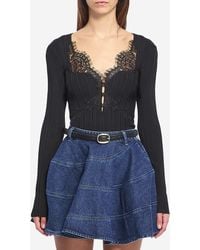 Go to G&B Negozio OnlineTop realized in ribbed knit enriched by contrasting lace inserts at the front. Deep V neckline. Buttons closure at the front. Colour: yellow