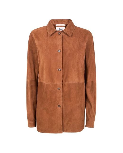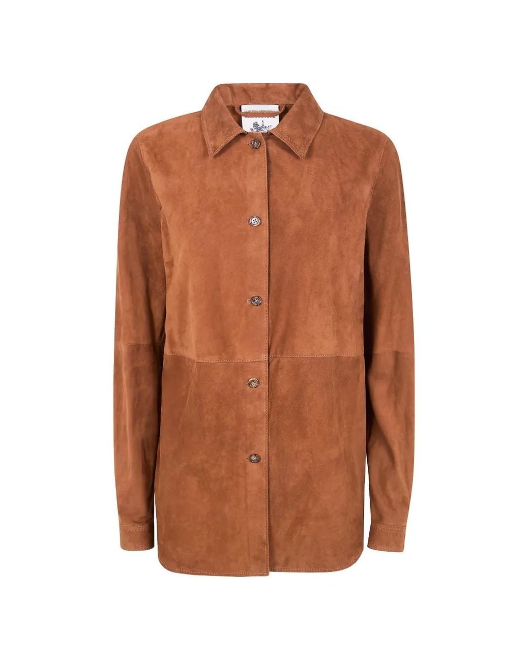 Brown panelled design button fastening long sleeves collared neckline Size: 42. Gender: Female. Material:Calf Suede. Colour: brown