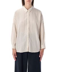 Go to ItalistRelaxed yet refined, the Sessùn Danie shirt is crafted from compact poplin with elegant contrasting stripes, woven in Italy. Designed with a loose fit and adjustable side ties, it offers both comfort and