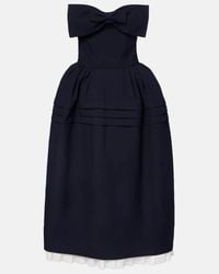 ShuShu/Tong Women's Blue Embellished Wool And Silk-Blend Twill Midi Skirt