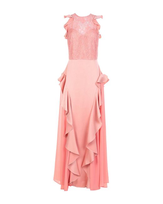 Satin, lace, ruffles, basic solid colour, round collar, sleeveless, no pockets, rear closure, zip, fully lined, inner shorts, trapeze style. 70% Viscose, 30% Nylon. Colour: pink