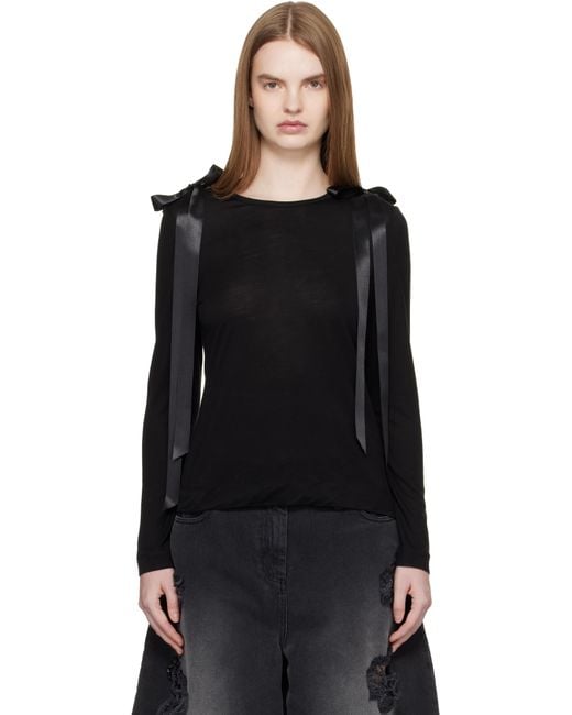 Women's Black Bow Ribbon Tail Long Sleeve T-Shirt