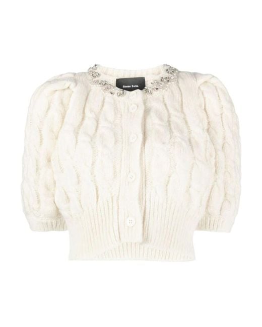 Round neck, button opening and closing, bubble sleeves. Colour: white