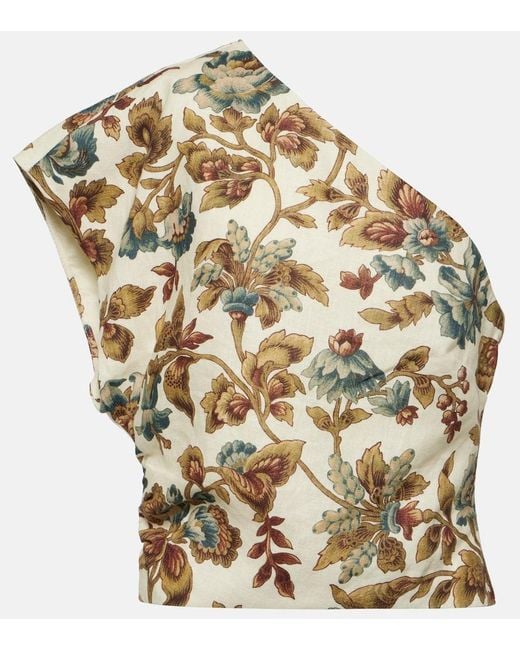 - Eleanora Floral One-Shoulder Linen Crop Top