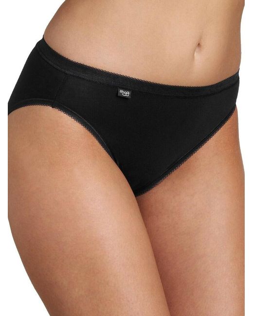 Sloggi Basic+ Tai Brief in White. 4 Pack. Cotton rich knickers. Mid-rise knickers with moderate rear coverage and an elasticated waistband. The product is machine washable. Colour: black