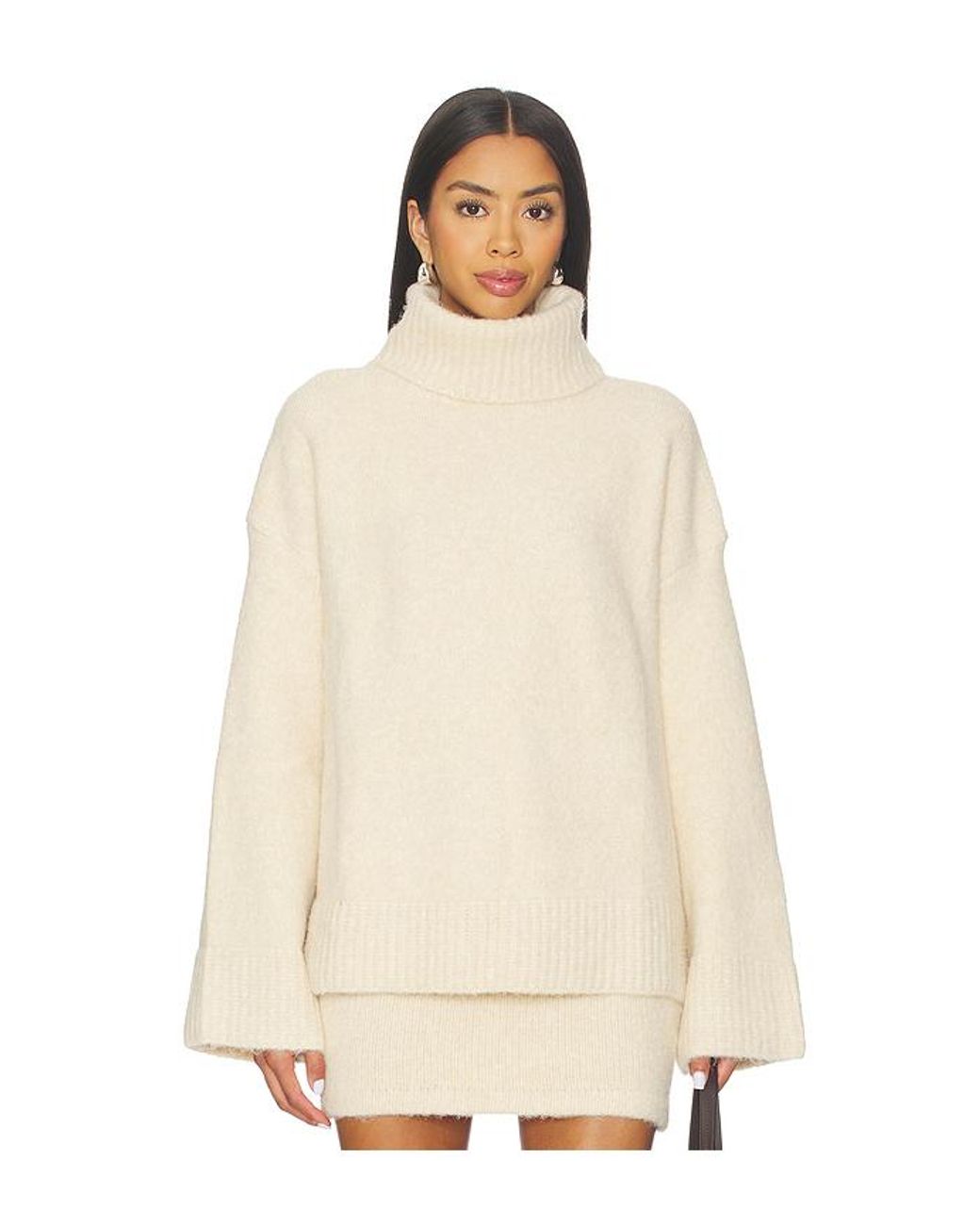 SNDYS Winnie Jumper in Cream. Size L. Also in M, S, XL, XS, XXS. SNDYS Winnie Jumper in Cream. Size M, S, XL, XS, XXS. 68% acrylic 12% polyester 11% nylon 6% wool 3% spandex. Dry clean only. Turtleneck styling. Item not sold as a set. SDYS-WK81. SFT649-CRE. We want women to feel like they don't need permission to showcase their own style. For us, it's always going to be about promoting creativity without contingencies. Directors Melanie Purcell and Lauren Gocher named SNDYS after their favorite day of the week, Sunday, where they would spend time with family and discover new creative outlets. SNDYS offers cutting edge and affordable styles that not only follow trends, but start them. Based out of Sydney, Australia, SNDYS is bold and unabashedly feminine. Expect matching lounge sets, floral maxi dresses, and timeless outerwear.