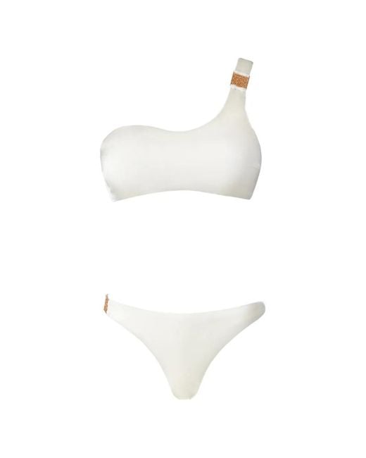 Women's White One-Shoulder Embellished-Detail Bikini