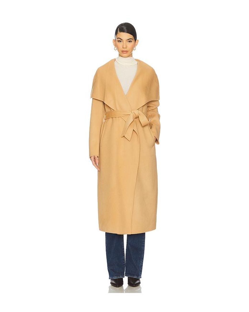 Soia & Kyo Britta Coat in Tan. Size L. Also in XXS, XS, S, M. Soia & Kyo Britta Coat in Tan. Size XXS, XS, S, M. Self : 70% Wool 30% Nylon. Dry clean only. Lightweight knitted fabric. Wrap coat with belt closure. Belt included. Slip pockets. SOIA-WO499. P003650. Soia & Kyo is known for its fabulous fit, detailing, and extraordinary styling; oversized buttons, asymmetrical collars, wide belts, and contrasting trims. The designers are always on the look out for the best European wools for the best looking outerwear.